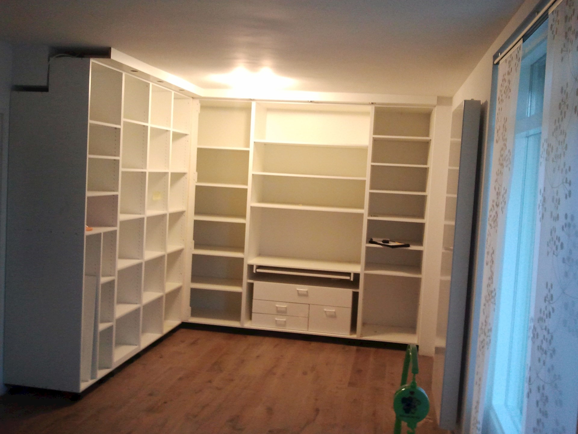 in een nis, speciale hoek, passend tussen vloer en plafond of om de deur heen.